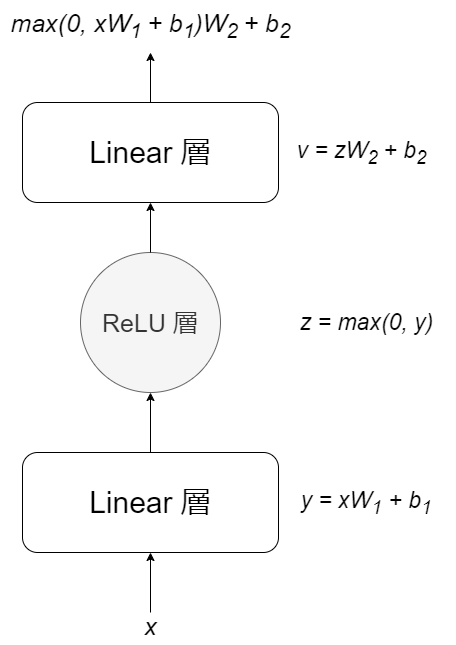 Linear層とsoftmax層は一般的に他のニューラルネットワークで使用される層と同じです。 Linear層は重み行列とバイアスを使ってベクトルを線形変換し、softmax層はベクトルから正規化された確率分布を生成します。