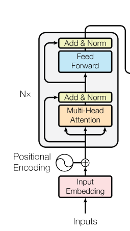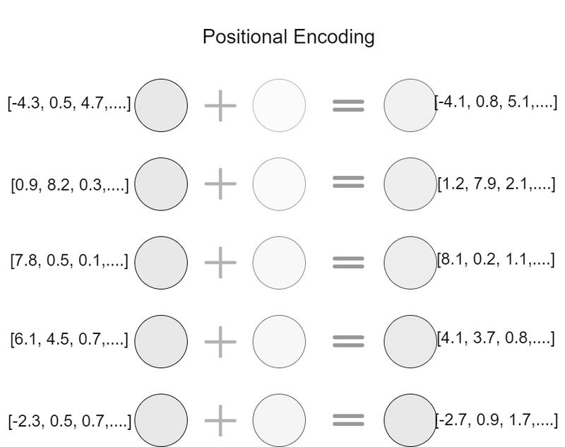 埋め込みベクトルにマッピングされた配列は、Positional Encoding処理を与えられます。後述するself attention機構では単語を並列処理するため、単語の順序関係が失われてしまいます。 Positional Encodingではsin波とcos波を使用した位置エンコーディングを埋め込みベクトルに加算することで、単語の位置関係を埋め込みベクトルに記憶させます。 これでTransformerの内部機構に渡せる形に自然言語を処理できたことになります。